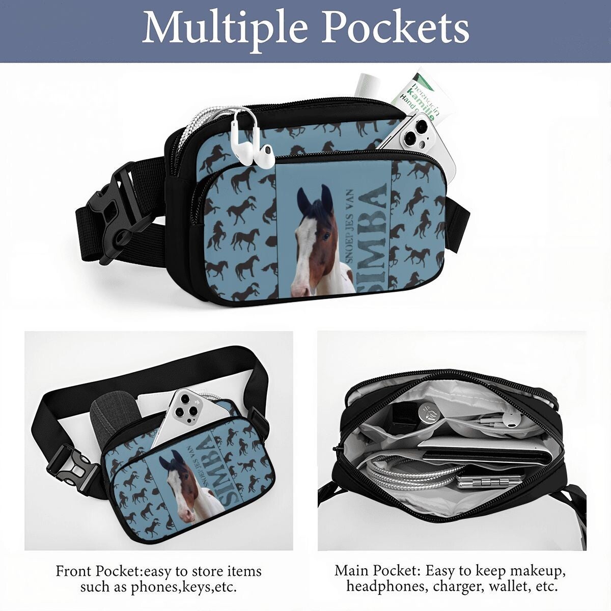 Dit leuke heuptasje is te gebruiken rond je middel of als 'cross body bag' en je kunt er vanalles in kwijt zoals snoepjes of je telefoon.